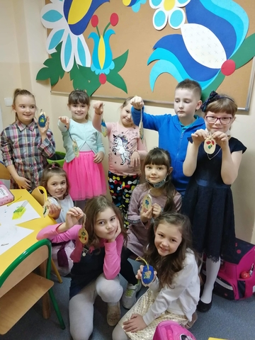 Przed samymi świętami dzieci z klas 1-3 ozdobiły drewniane jajko wielkanocne wzorem kaszubskim. W trakcie zajęć stosowały różne techniki pracy. Uczniowie z klas starszych wykonali piękne palmy na Niedzielę Palmową i upiekli świąteczną babkę. Każdy był dumny ze swoich nowych umiejętności. Kreatywne zajęcia praktyczne cieszą się dużym zainteresowaniem.