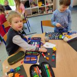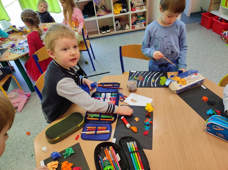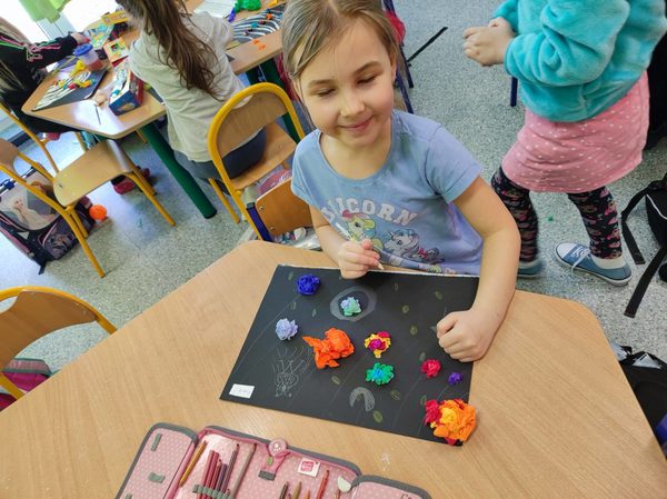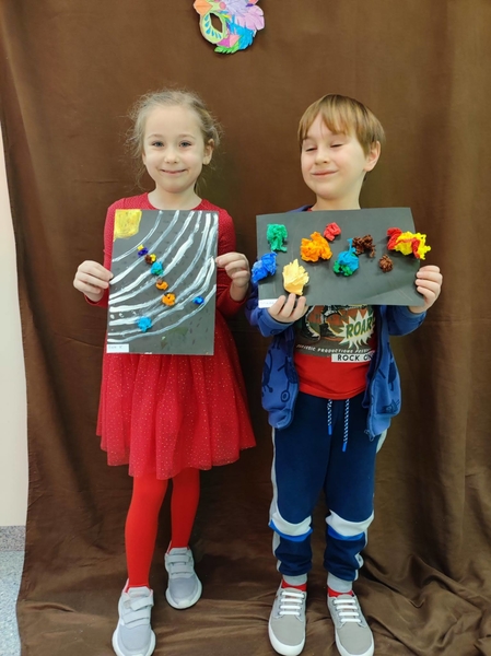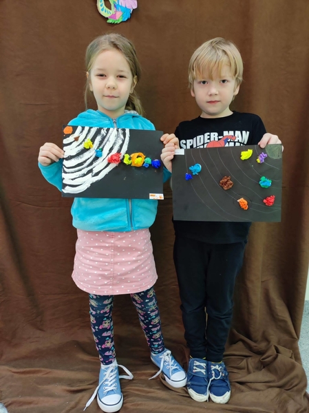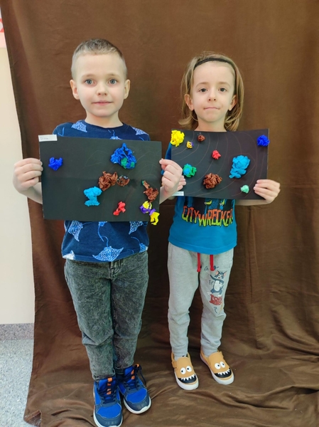 Wirujące planety w układach słonecznych grupy 0 B Opublikowano 9 marca 2022 W czasie tygodnia kosmosu dzieci dowiedziały się wielu ciekawostek związanych z kosmosem, poznały planety i narysowały własne układy słoneczne. Wychowawczynie: Magdalena Hnatow, Ewa Kończal-Kwiatkowska