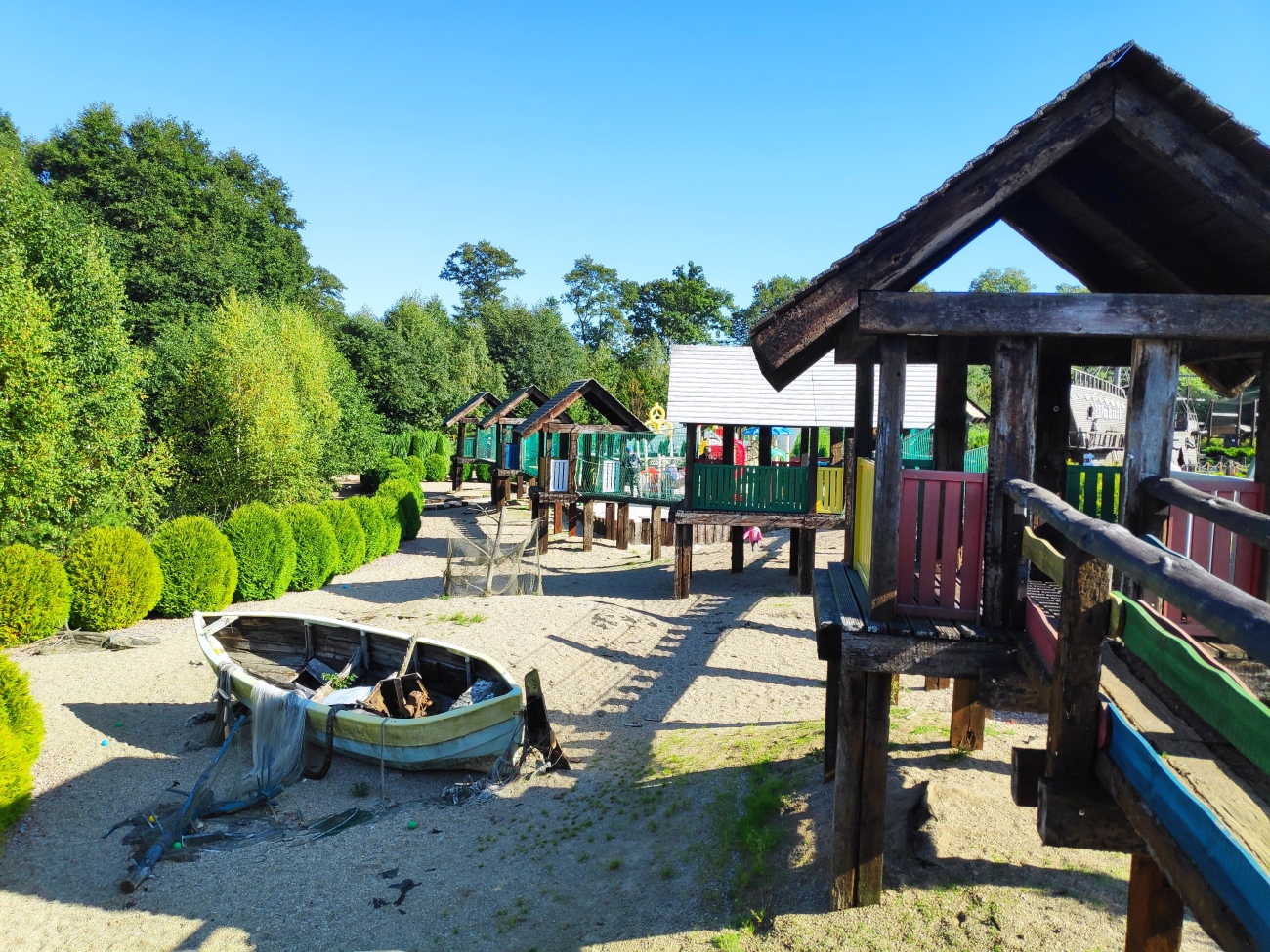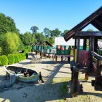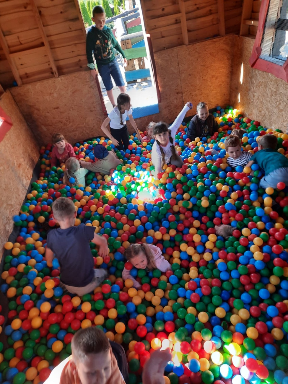 Po posiłku na świeżym powietrzu był czas na zabawę w atrakcyjnym Parku Zręcznościowo-Linowym Małego Pirata, gdzie dzieci pokonywały linowy tor przeszkód rozpięty między 11-oma kolorowymi domkami.