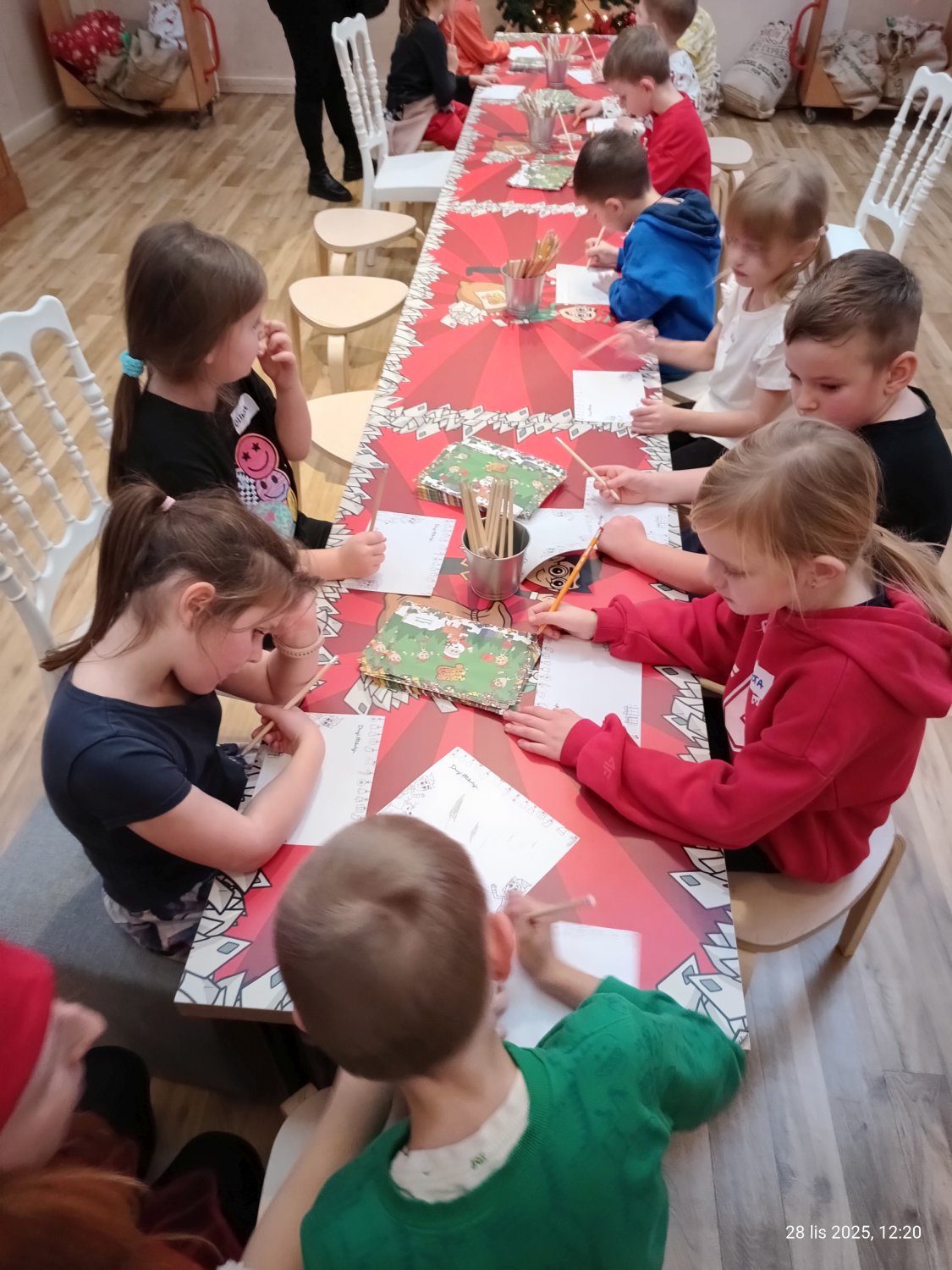 Podczas wizyty w Wielkiej Fabryce Elfów wzięliśmy udział w wyjątkowej, świątecznej przygodzie. Na początku zostaliśmy powitani przez Elfy, które opowiedziały nam o swojej pracy i o przygotowaniach do Świąt Bożego Narodzenia. Wspólnie z Elfami pomagaliśmy w pakowaniu prezentów, pisaliśmy list do Świętego Mikołaja.