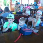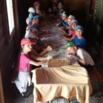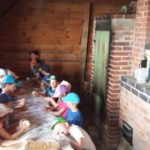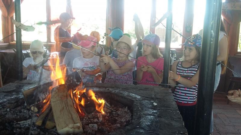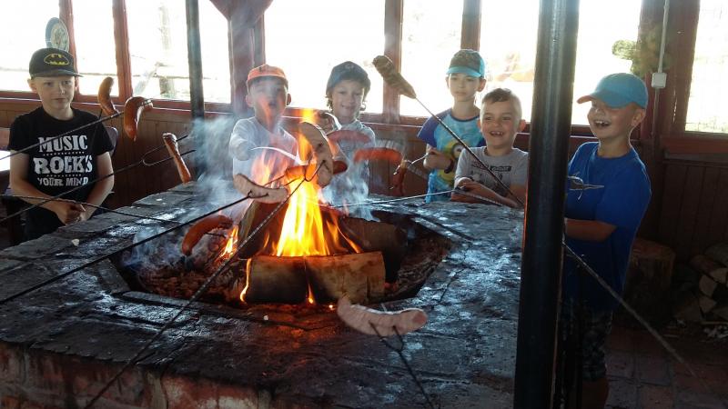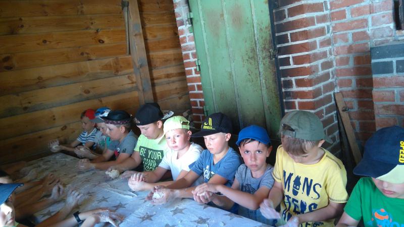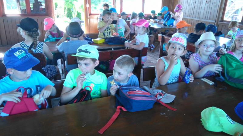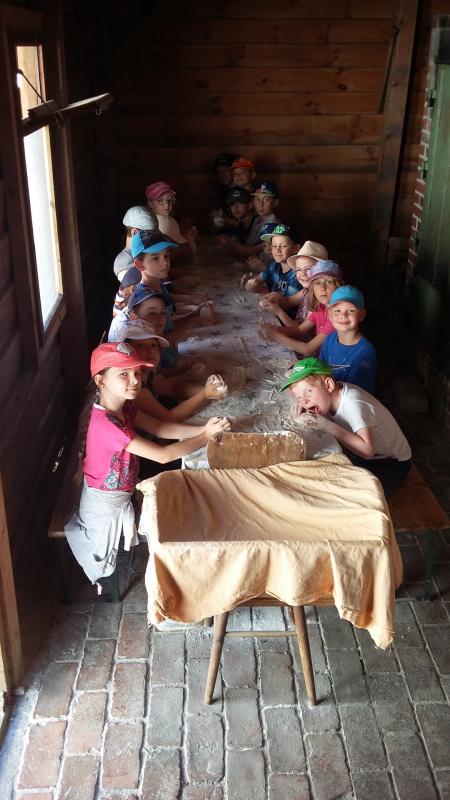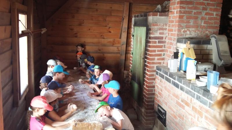 Chętni uczniowie mieli okazję spróbować dojenia krowy. Wszyscy wzięli udział w przygotowywaniu bułeczek z ciasta drożdżowego oraz figurek z masy solnej. Upieczone bułeczki i figurki każde dziecko zabrało do domu. Po warsztatach wszyscy piekli kiełbaski przy ognisku i zjedli wspólny posiłek. W przerwach pomiędzy zajęciami uczniowie mogli wesoło spędzać czas na kolorowym placu zabaw. Po intensywnie spędzonych 4 godzinach wszyscy zadowoleni i uśmiechnięci wrócili do szkoły.