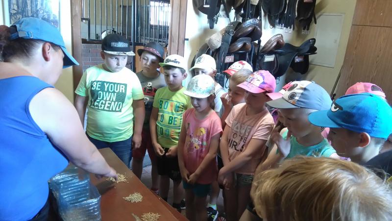 We wtorek 29 maja 2018 r. uczniowie klasy I a i I b odwiedzili gospodarstwo agroturystyczne w Kiełpinie. Wycieczka rozpoczęła się przejażdżką wozem drabiniastym, zaprzężonym w dwa konie, po urokliwej miejscowości kaszubskiej, jaką jest Kiełpino. Następnie dzieci oglądały i słuchały ciekawostek o zwierzętach żyjących w gospodarstwie, o maszynach rolniczych, które były jeszcze do niedawna używane oraz oglądały i uczyły się rozpoznawać nasiona zbóż.