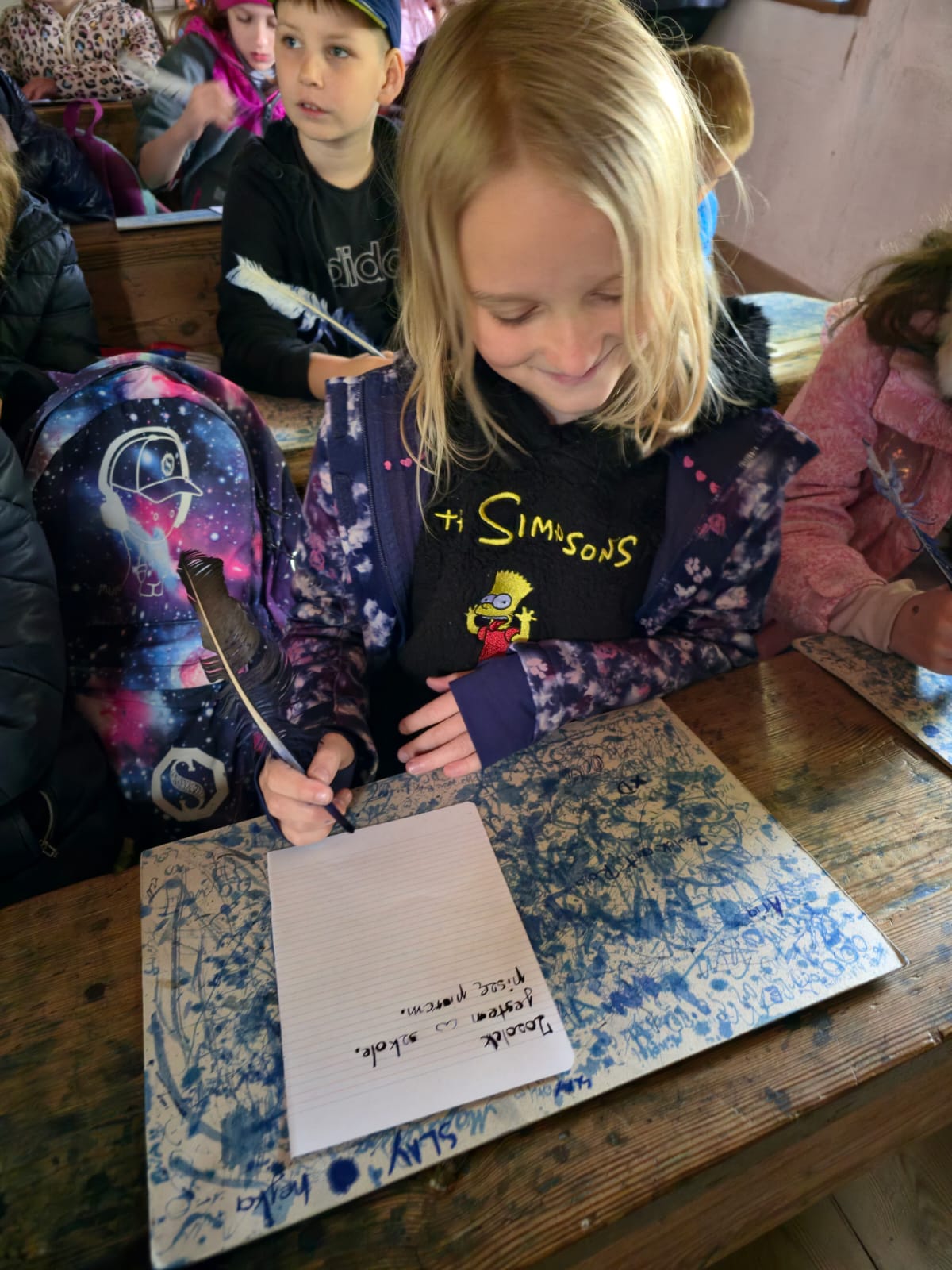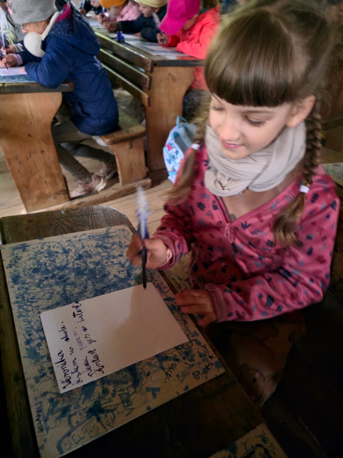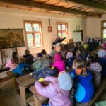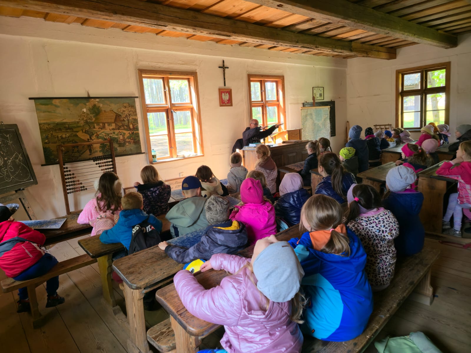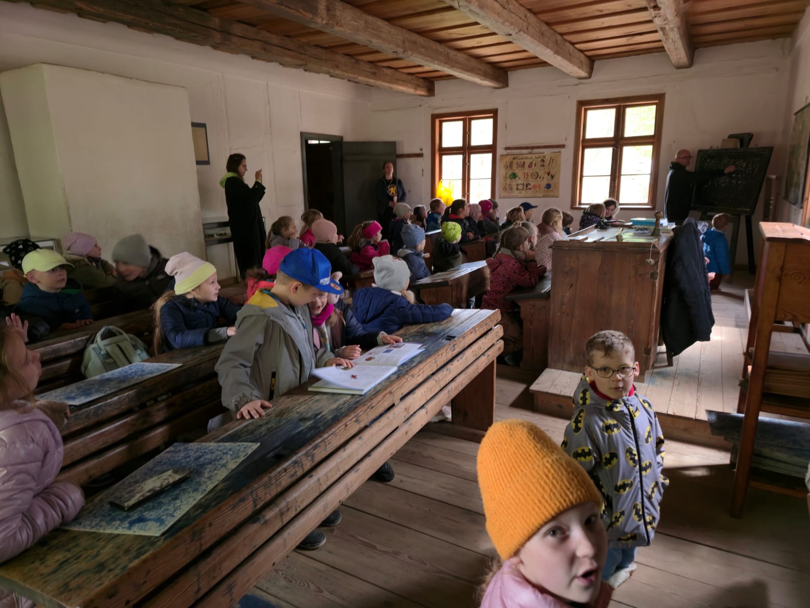 15 maja 2025 roku uczniowie klasy I i II uczący się j. kaszubskiego odwiedzili Skansen we Wdzydzach Kiszewskich, założony przez Teodorę i Izydora Gulgowskich. Podczas spaceru po najstarszym muzeum na wolnym powietrzu w Polsce dzieci miały okazję zobaczyć zabytkowe chaty, warsztaty rzemieślnicze oraz poznać codzienne życie dawnych mieszkańców Kaszub. Zwiedziły także dawną szkołę, uczestniczyły w warsztatach pisania gęsim piórem i dowiedziały się, jak wyglądało nauczanie w przeszłości – jakie obowiązywały zasady, jak wyglądała klasa i czym pisano.