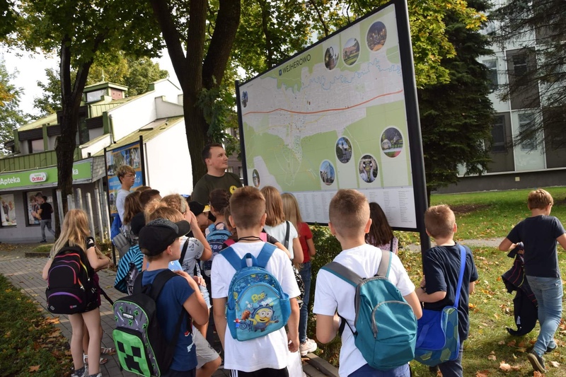11.09.2021r. dzieci brały udział w grze terenowej pt. „Poznaj lepiej Wejherowo”. Na początku otrzymały mapki Wejherowa, które miały zaznaczone 12 tajemniczych miejsc.