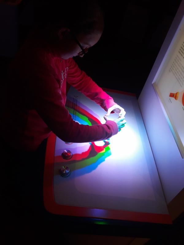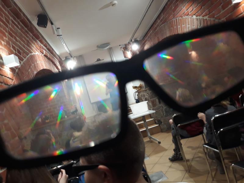 Podczas warsztatów dowiedzieliśmy się, że światło widzialne i tęcza to nie wszystko co można o świetle powiedzieć. Kolorową sprężyną wywoływaliśmy fale świetlne, obserwowaliśmy kolorowe rozszczepienia światła przez magiczne okulary, oglądaliśmy zdjęcia rentgenowskie, największą naszą uwagę przykuł jednak noktowizor, szkoda że nie mamy takiego w domu 😉