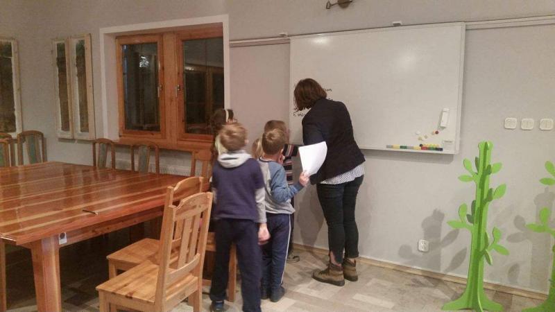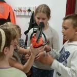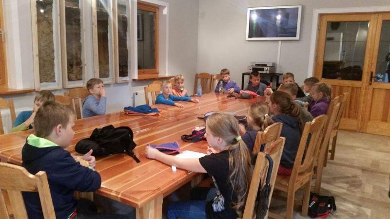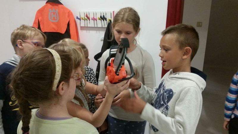 W leśniczówce dzieci oglądały film przyrodniczy. Zapoznały się z pracą leśniczego oraz poznały wybrane zwierzęta leśne. Chętni uczniowie brali udział w warsztatach – wypalanie drewna.