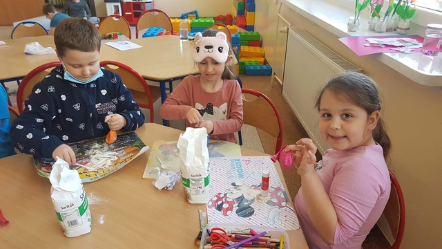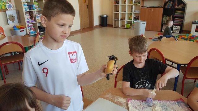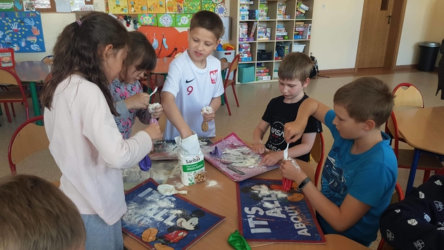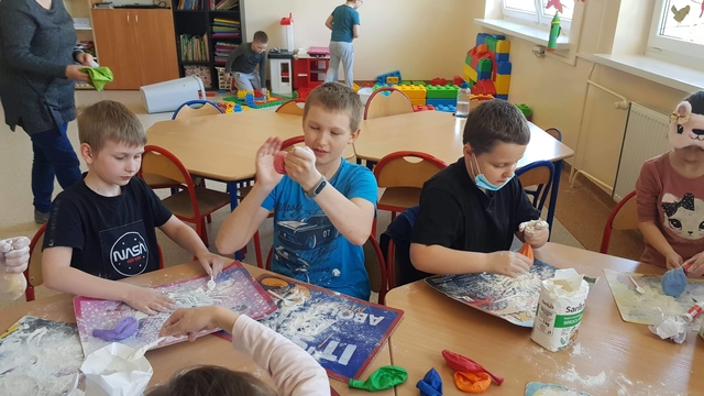 2 czerwca, na zajęciach, dzieci uczęszczające do szkolnej świetlicy samodzielnie stworzyły zabawki sensoryczne. Gniotki powstały z balonów, mąki oraz włóczki.