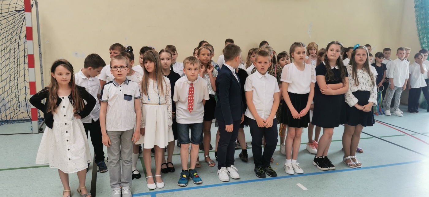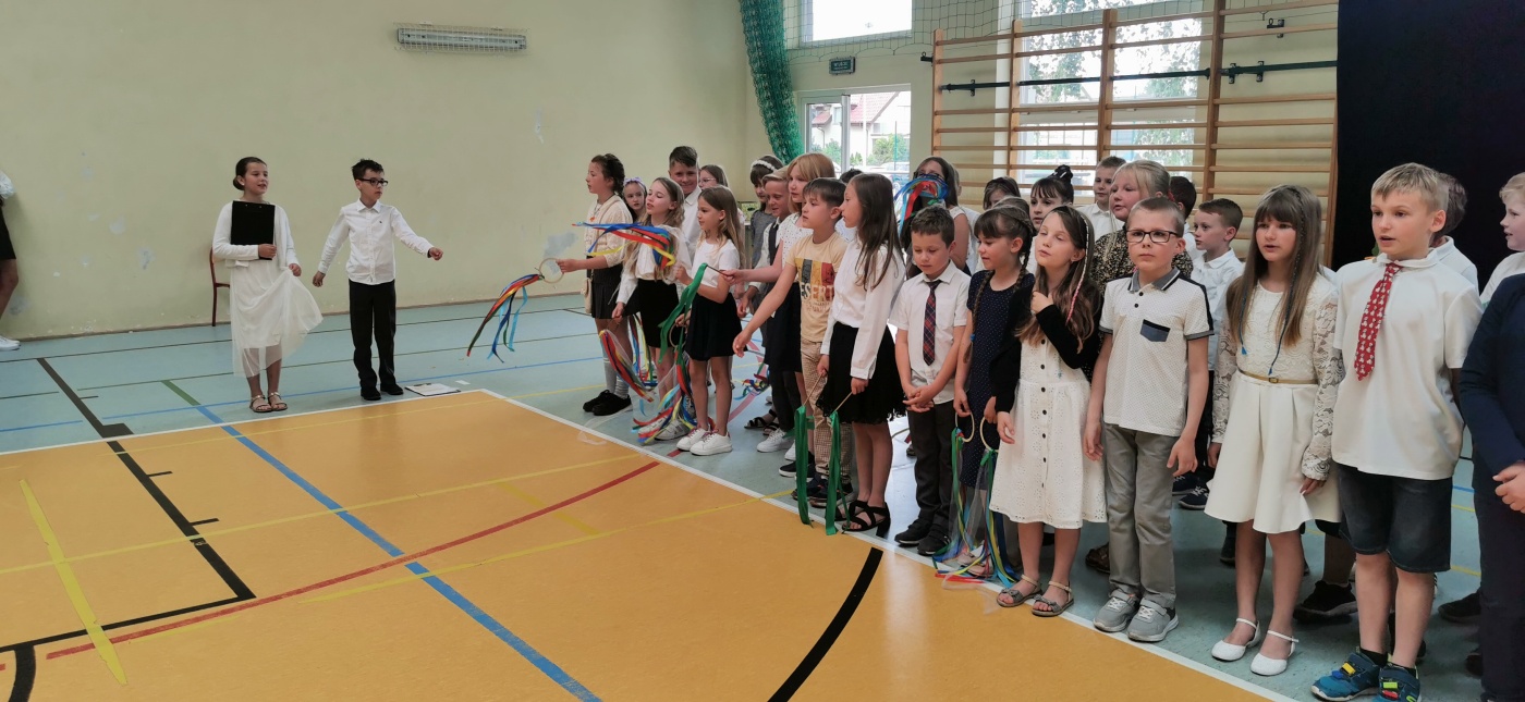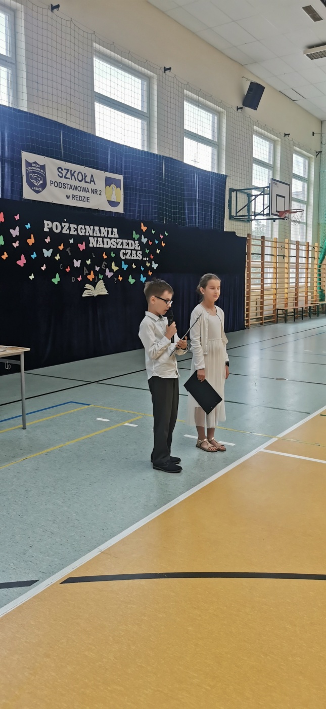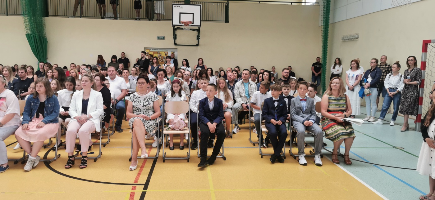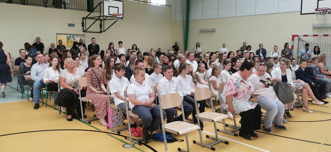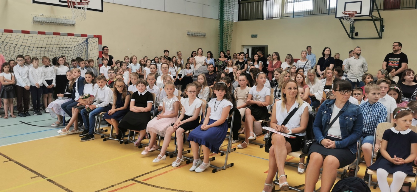 W hali sportowej odbyło się uroczyste zakończenie klas trzecich. Klasy drugie przygotowały fantastyczne przedstawienie. Bardzo miłym zaskoczeniem było perfekcyjne prowadzenie uroczystości przez młodych konferansjerów Radosława Rodaka i Kornelię Okrój. Odważni, nie bojący się wystąpień publicznych zrobili na wszystkich olbrzymie wrażenie.