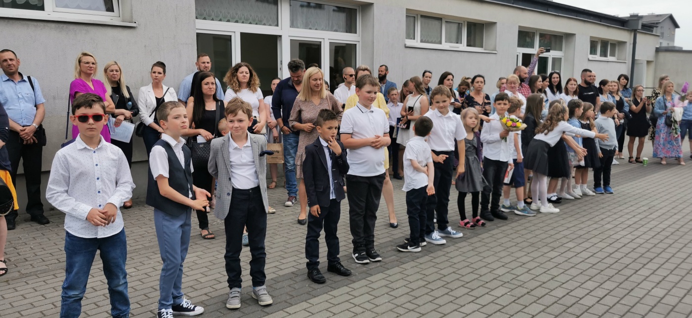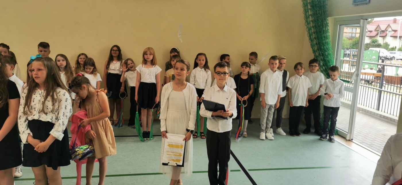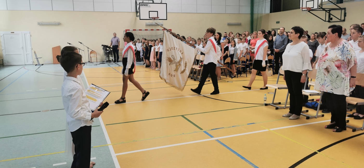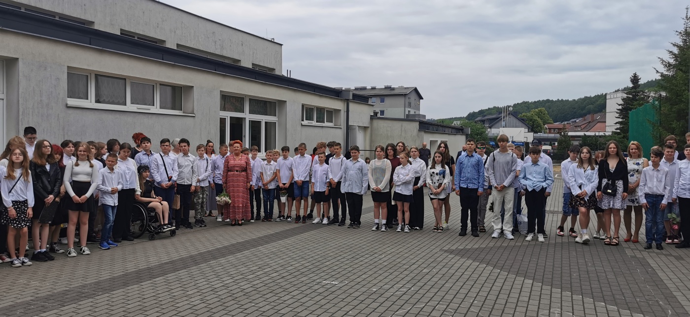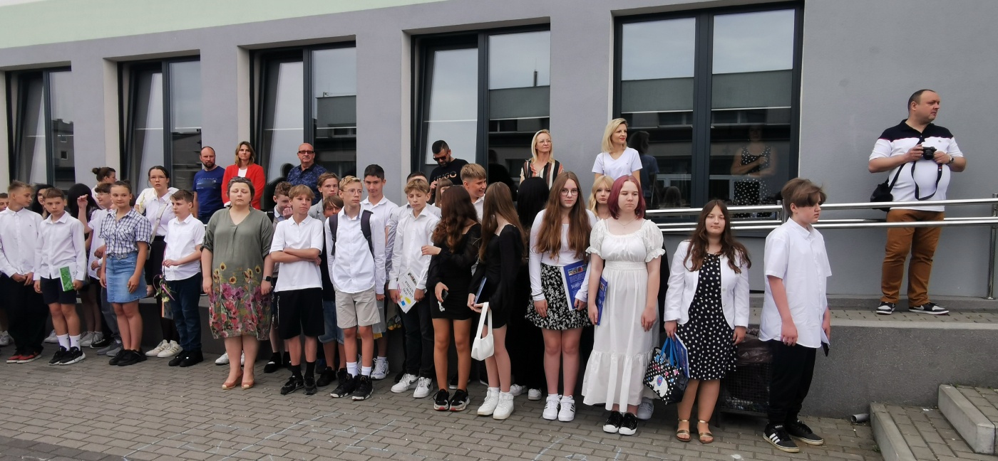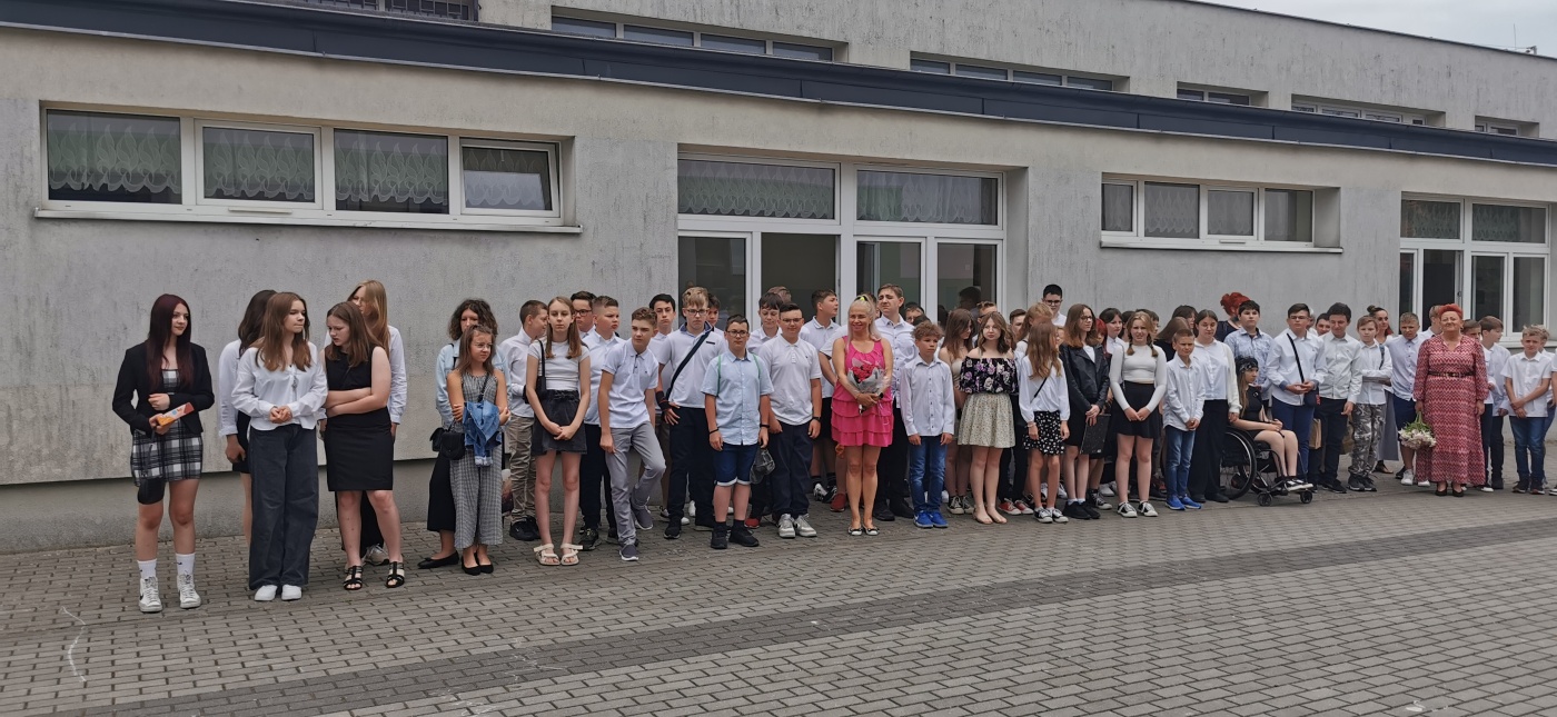 W hali sportowej odbyło się uroczyste zakończenie klas trzecich. Klasy drugie przygotowały fantastyczne przedstawienie. Bardzo miłym zaskoczeniem było perfekcyjne prowadzenie uroczystości przez młodych konferansjerów Radosława Rodaka i Kornelię Okrój. Odważni, nie bojący się wystąpień publicznych zrobili na wszystkich olbrzymie wrażenie.