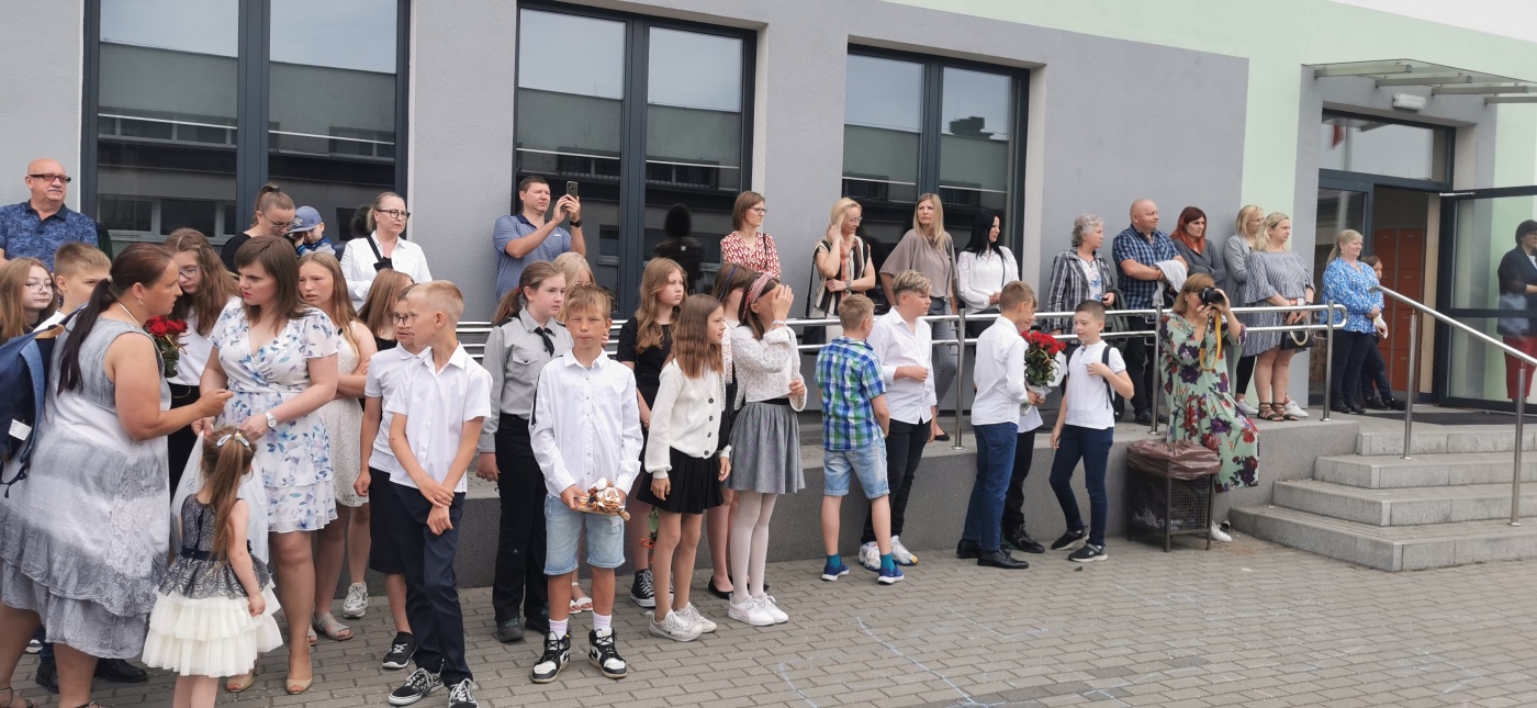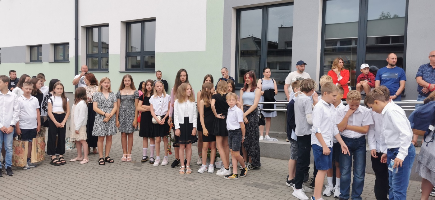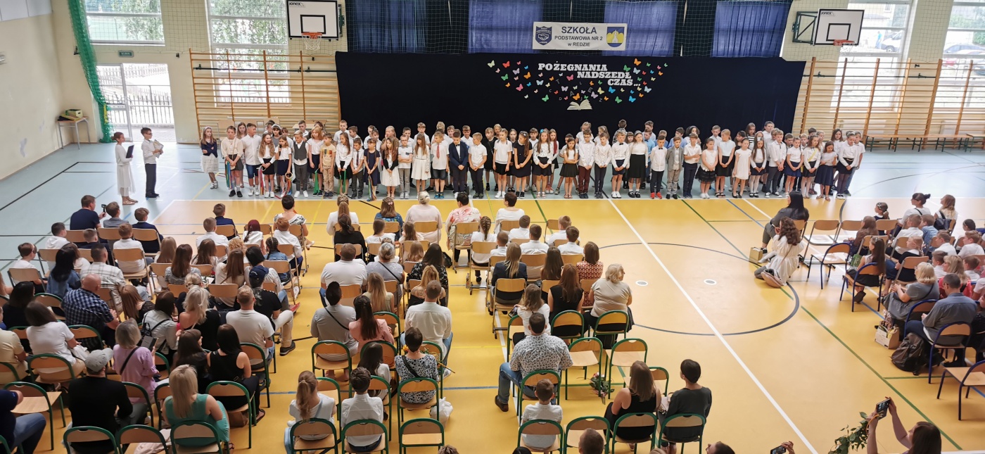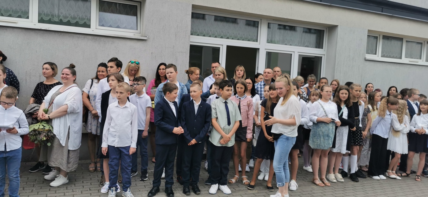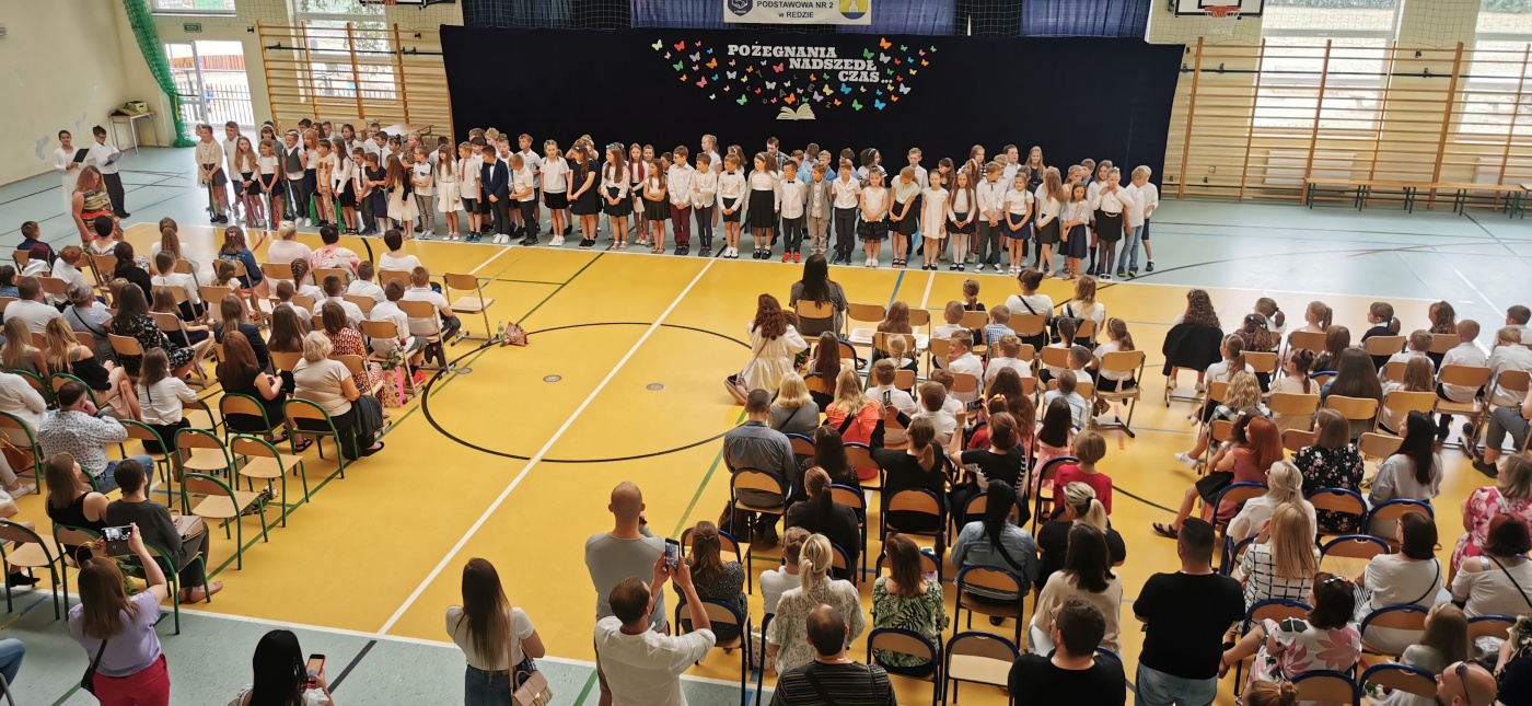 W hali sportowej odbyło się uroczyste zakończenie klas trzecich. Klasy drugie przygotowały fantastyczne przedstawienie. Bardzo miłym zaskoczeniem było perfekcyjne prowadzenie uroczystości przez młodych konferansjerów Radosława Rodaka i Kornelię Okrój. Odważni, nie bojący się wystąpień publicznych zrobili na wszystkich olbrzymie wrażenie.