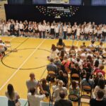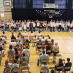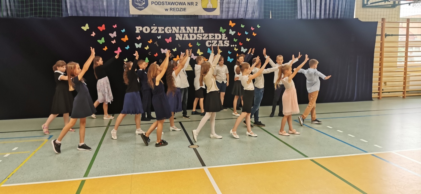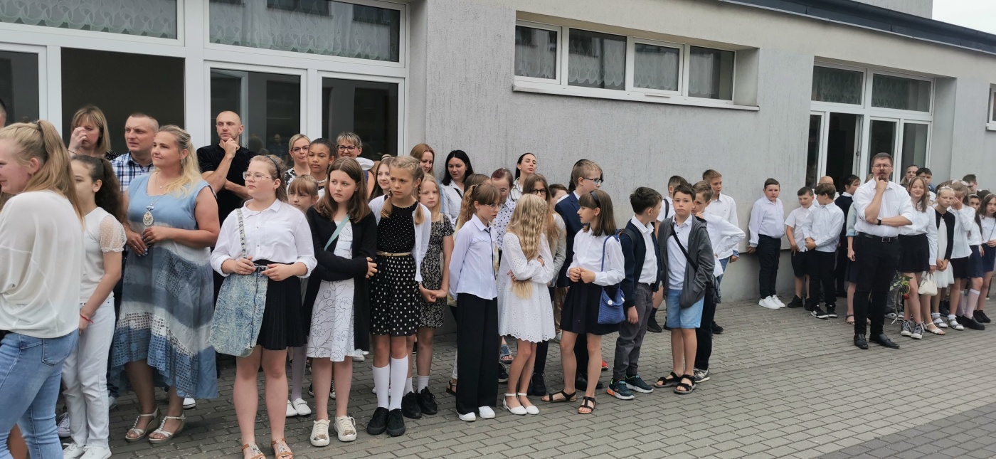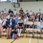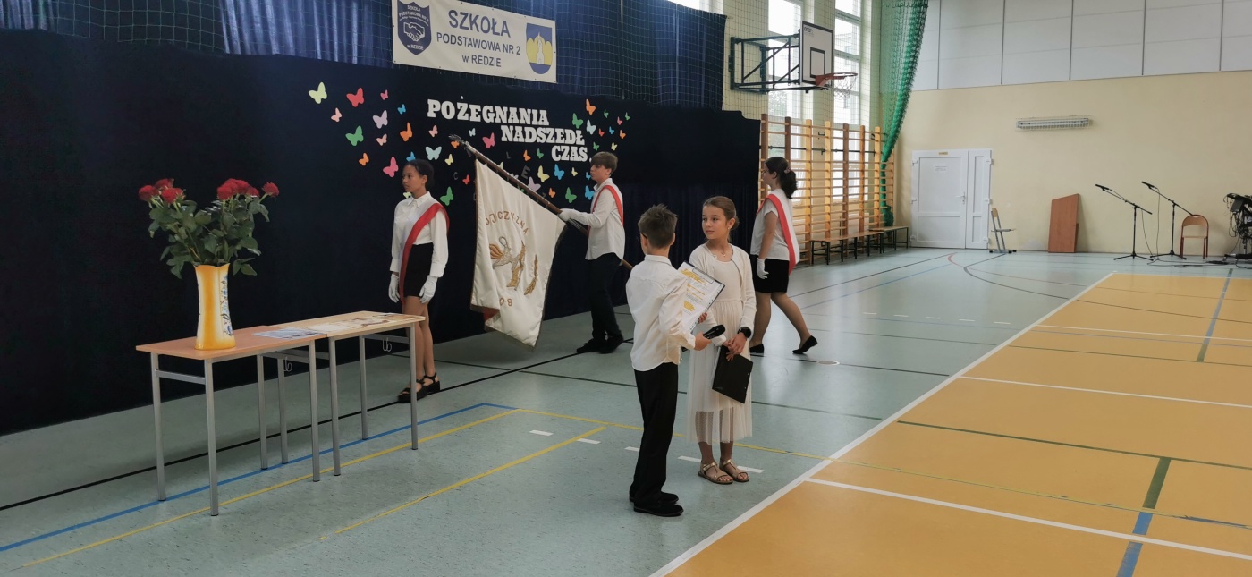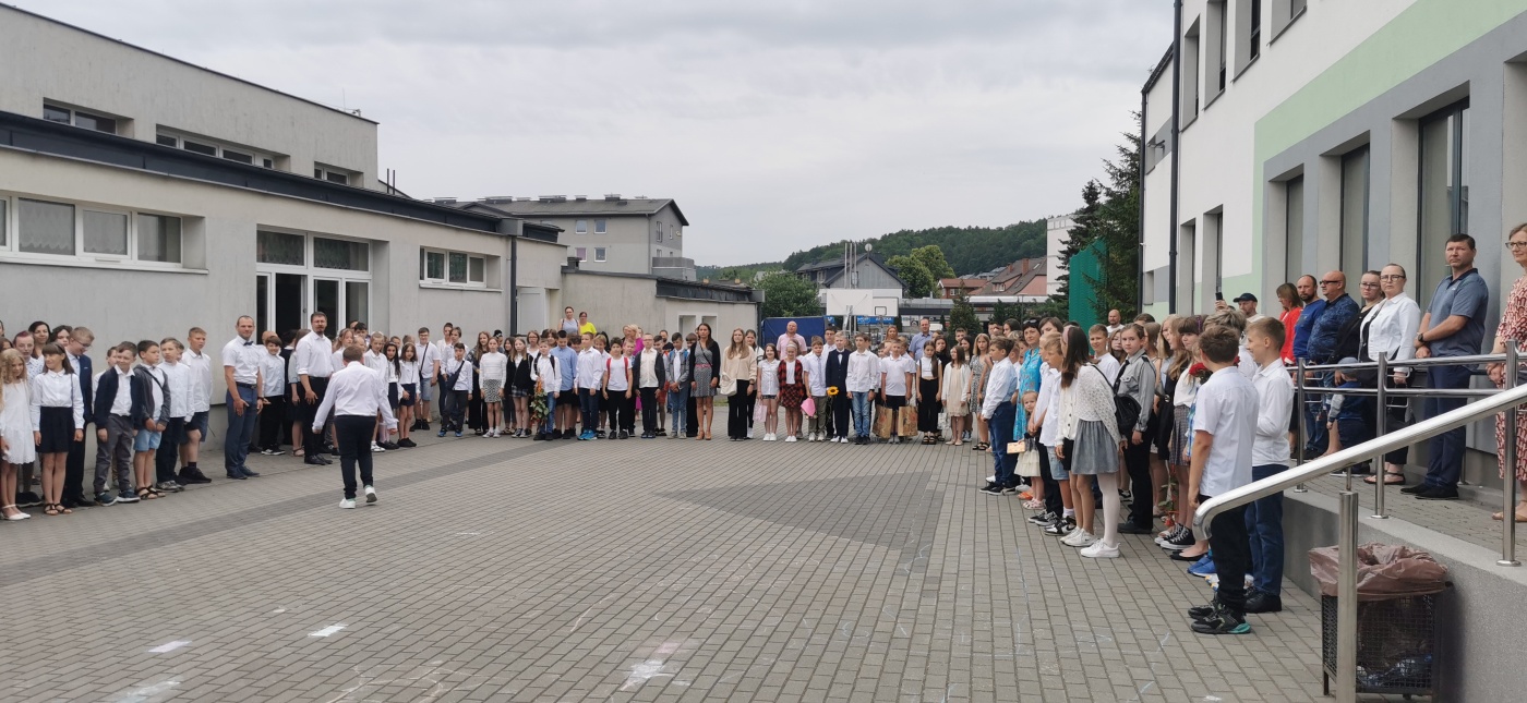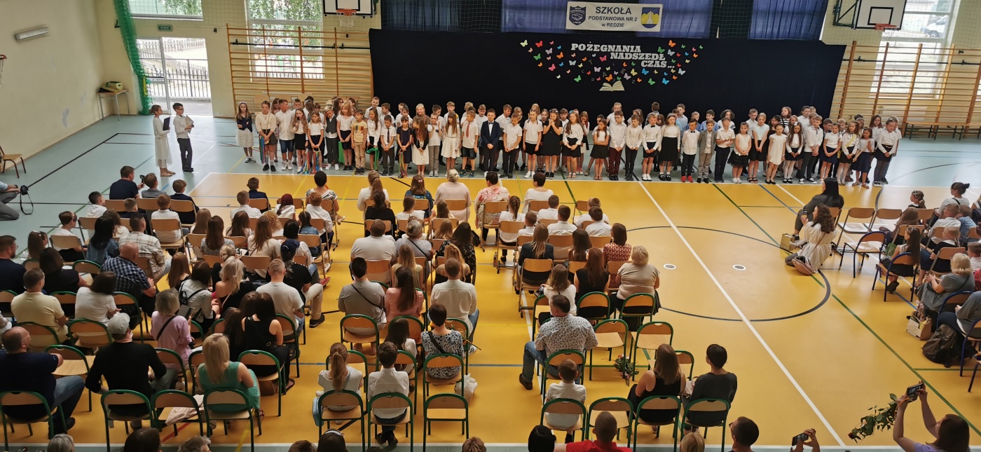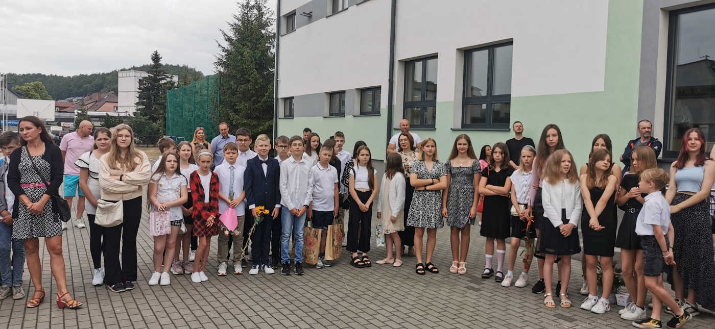 W hali sportowej odbyło się uroczyste zakończenie klas trzecich. Klasy drugie przygotowały fantastyczne przedstawienie. Bardzo miłym zaskoczeniem było perfekcyjne prowadzenie uroczystości przez młodych konferansjerów Radosława Rodaka i Kornelię Okrój. Odważni, nie bojący się wystąpień publicznych zrobili na wszystkich olbrzymie wrażenie.