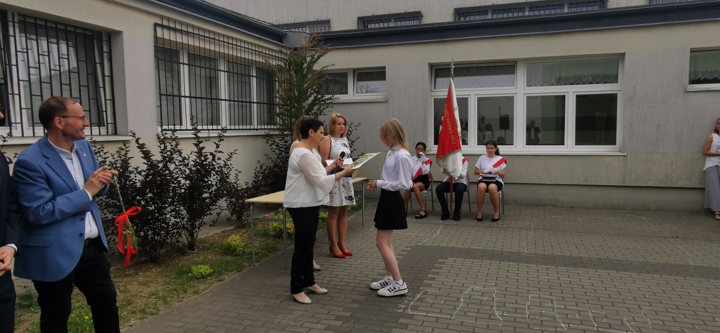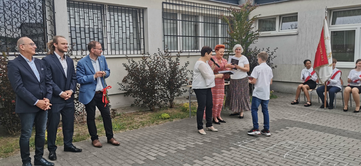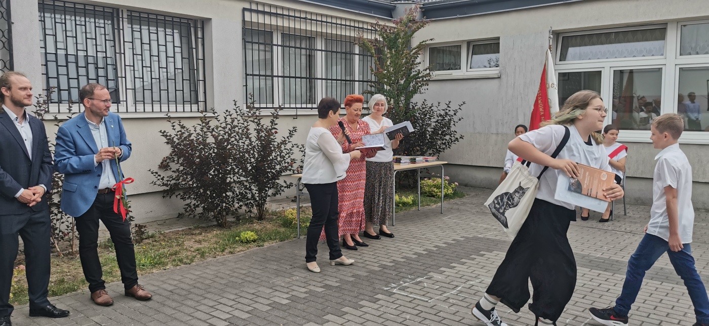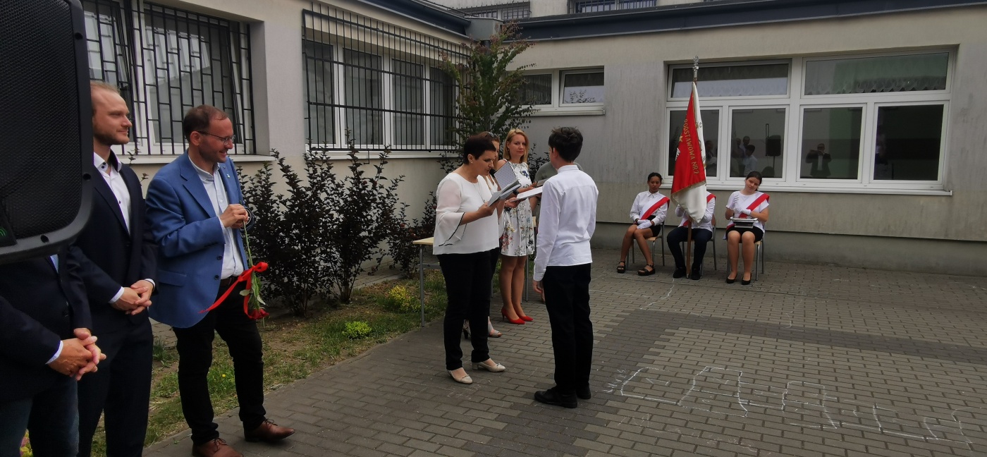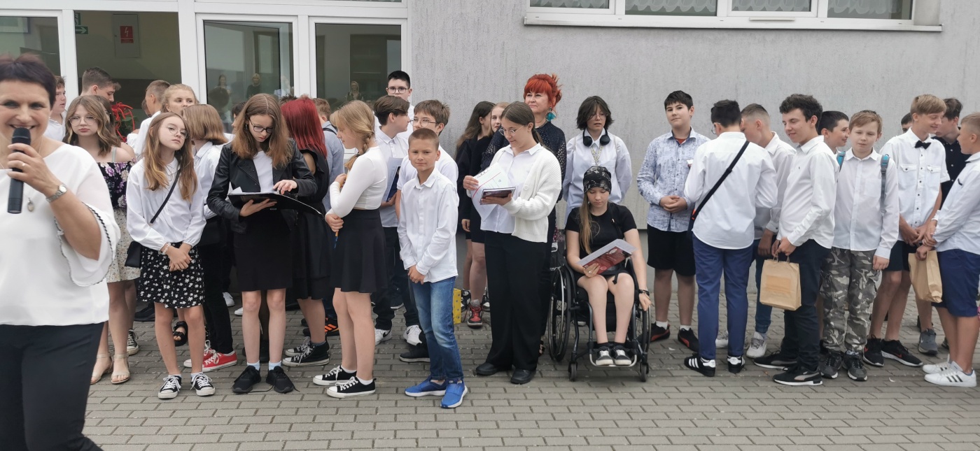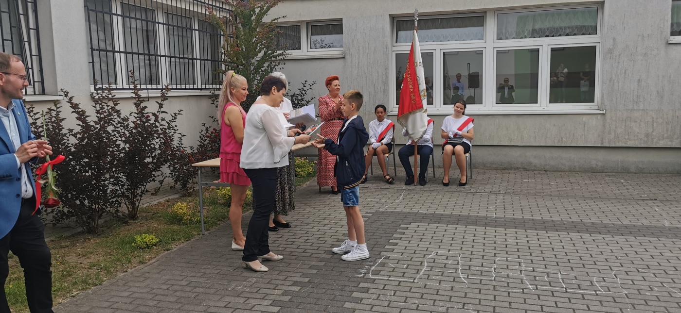 Po 10 miesiącach nauki zakończyliśmy kolejny rok szkolny. Na szkolnym patio pani Dyrektor mgr Iwona Nowicka wręczyła najlepszym uczniom naszej szkoły świadectwa z wyróżnieniem oraz nagrody książkowe. Nasi uczniowie wzięli w bieżącym roku udział w wielu konkursach, olimpiadach i zawodach sportowych zdobywając najwyższe laury, tak na szczeblu międzyszkolnym, powiatowym jak i wojewódzkim.