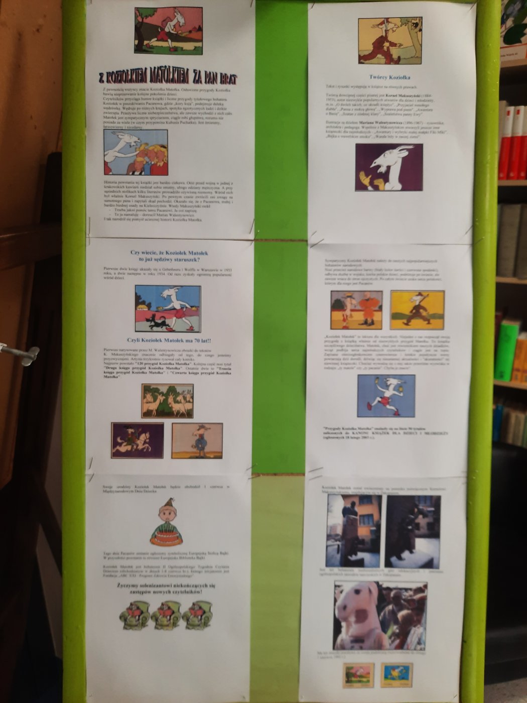 W poniedziałek, 8stycznia z okazji 140. rocznicy urodzin Kornela Makuszyńskiego w bibliotece podczas przerw uczniowie oglądali filmy o Koziołku Matołku oraz O dwóch takich, co ukradli Księżyc. Przygotowana została również: